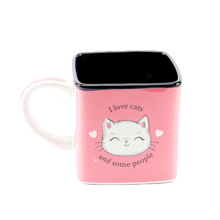 A Caneca Cubo Decorativa I Love Cats 300 ml é tão incrível que pode ser usada como porta objetos, item colecionável, e pra sua usual função de tomar as suas deliciosas bebidinhas. Ela é o mimo que te faltava!