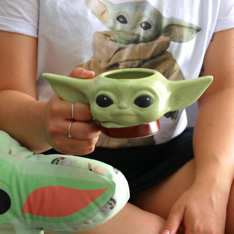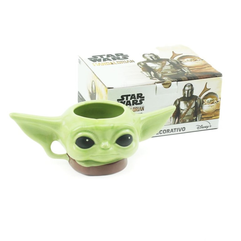 Lindíssima, ela vem trabalhada inteiramente em porcelana e com o formato 3D do baby Yoda,é absolutamente perfeito, incrível para ser adicionado a sua coleção!