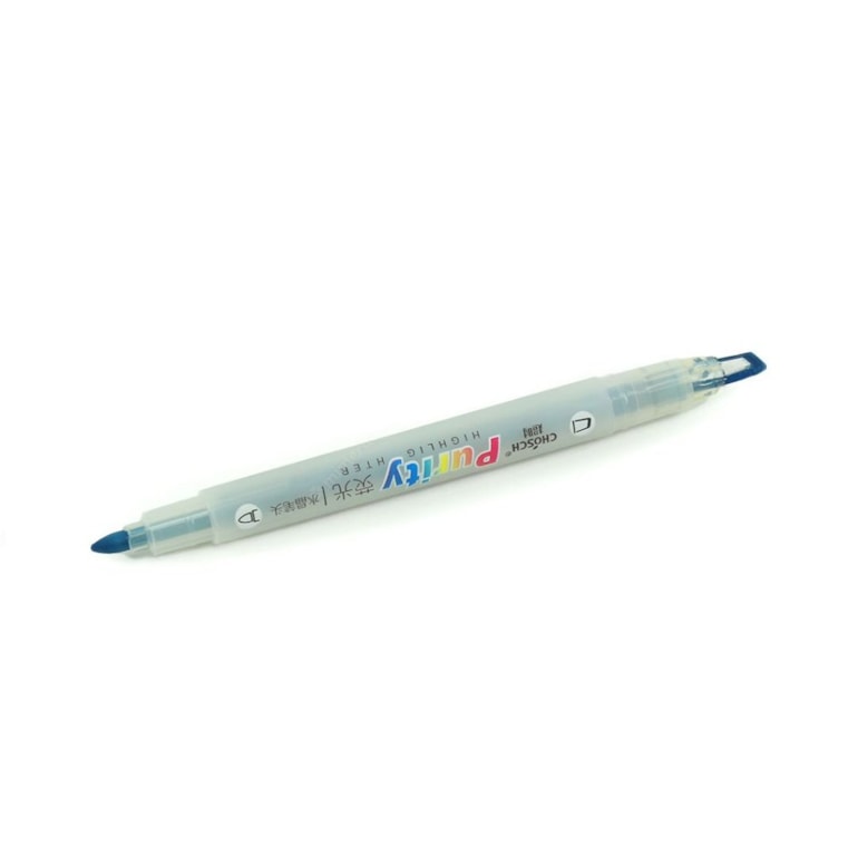 A Caneta Marca Texto 2 Pontas Porosas Azul tem duas pontas que permite vários tipos de traços.