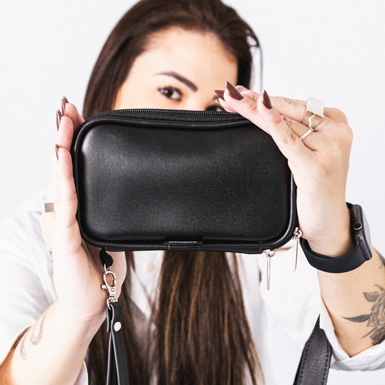 Essa Carteira Porta Celular Preta é perfeita para dar uma saidinha com um tamanho perfeito para carregar seu celular com segurança e muita praticidade. Sem contar que "all black" naquele estilo que combina com tudo! Você vai amar!