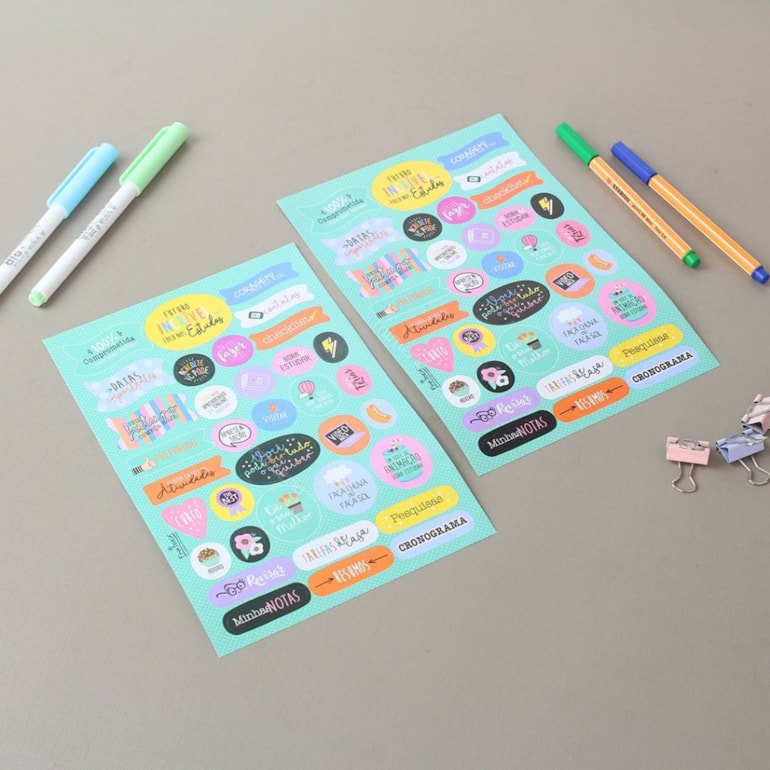 A Cartela de Adesivos Meus Estudos é perfeita para você combinar com outros mimos de papelaria criativa da nossa loja e deixar seus momentos de estudos ainda mais agradáveis!