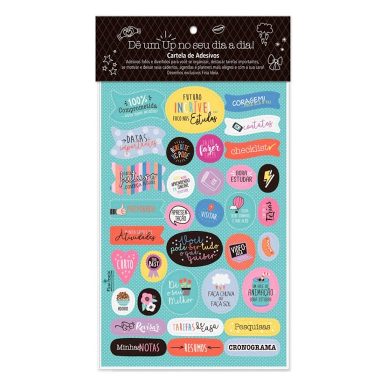 Super fofa, esta cartela vem com vários adesivos para organização de tarefas e rotina, além de frases alto astral, como: “Seu futuro começa hoje” e “Você pode ser tudo o que quiser”. Um charme!