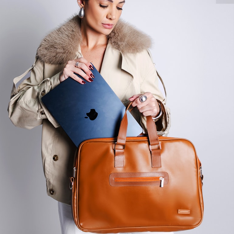 O Case para Notebook 15,6" Caramelo é um verdadeiro mimo. Ele conta também com uma divisória interna, que não deixa volume ao carregar os acessórios do seu notebook! É mais do que ideal para sua rotina de trabalho, sendo super fácil de limpar, além de prático e confortável de carregar. É exatamente o que você precisava! Use Mimeria!