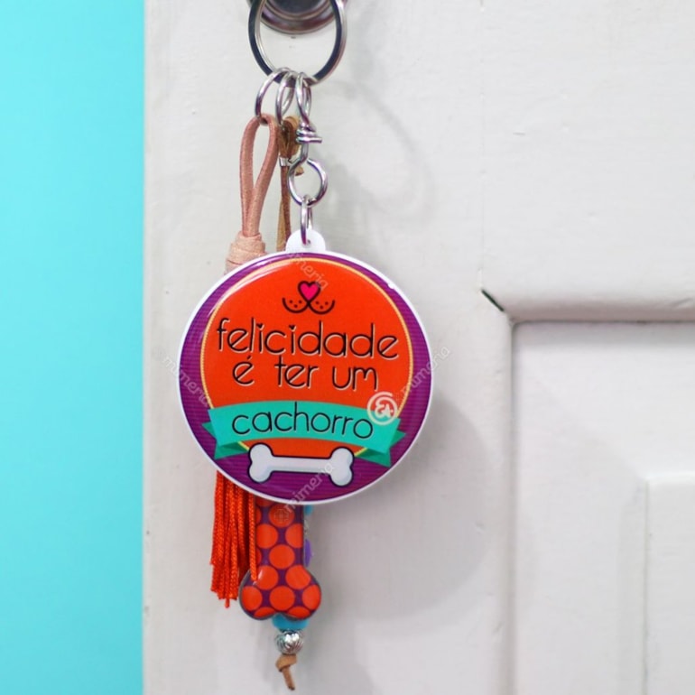 O Chaveiro Cachorro Felicidade traz uma argola de metal para colocar suas chaves e um ganchinho bem prático para pendurar no porta chaves ou na bosa, como preferir. O importante é encontrar as chaves rapidamente. Esse chaveirinho é perfeito para dar de presente para os amantes de cachorros mães, tias, irmãs, amigas, primas, colegas.... Sempre tem alguém do nosso lado. Essa linha de chaveiros tem uma variedade infinita de animais fofos!