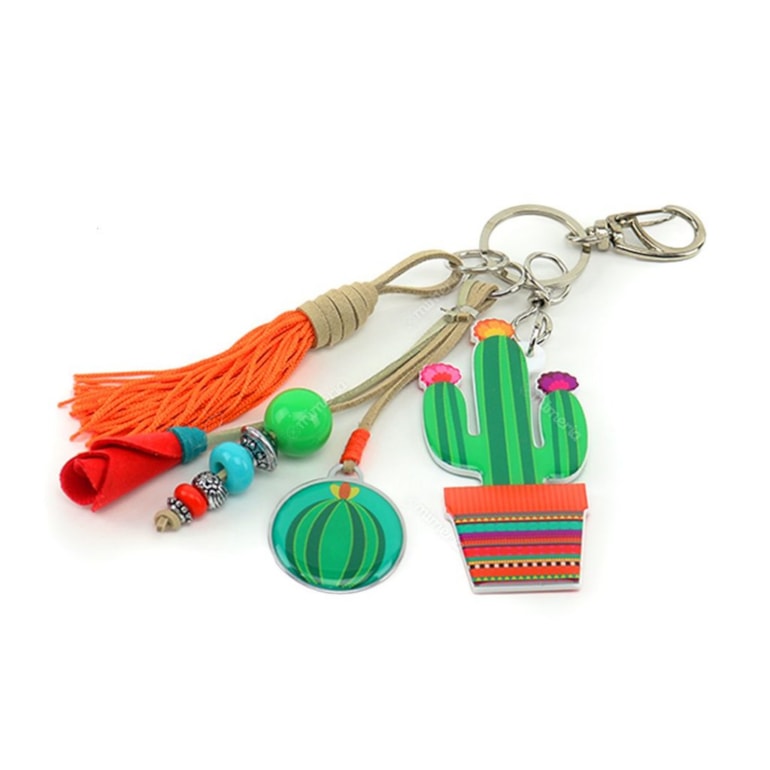Uma argolinha de metal auxilia você a colocar suas chaves no Chaveiro Cacto Mexicano. Ele tem também um ganchinho prático permite pendurá-lo no porta chaves ou onde mais precisar, encontrando suas chaves mais rapidamente ou só simplesmente para enfeitá-las. Perfeito para surpreender mães, tias, irmãs, amigas, primas, colegas com boas vibes. Os outros chaveiros de cactos dessa linha também são encantadores.