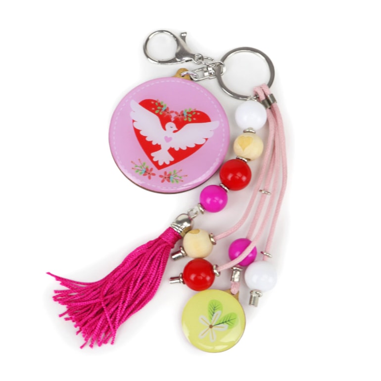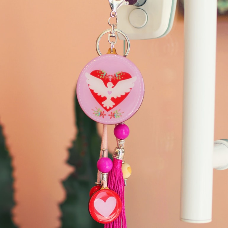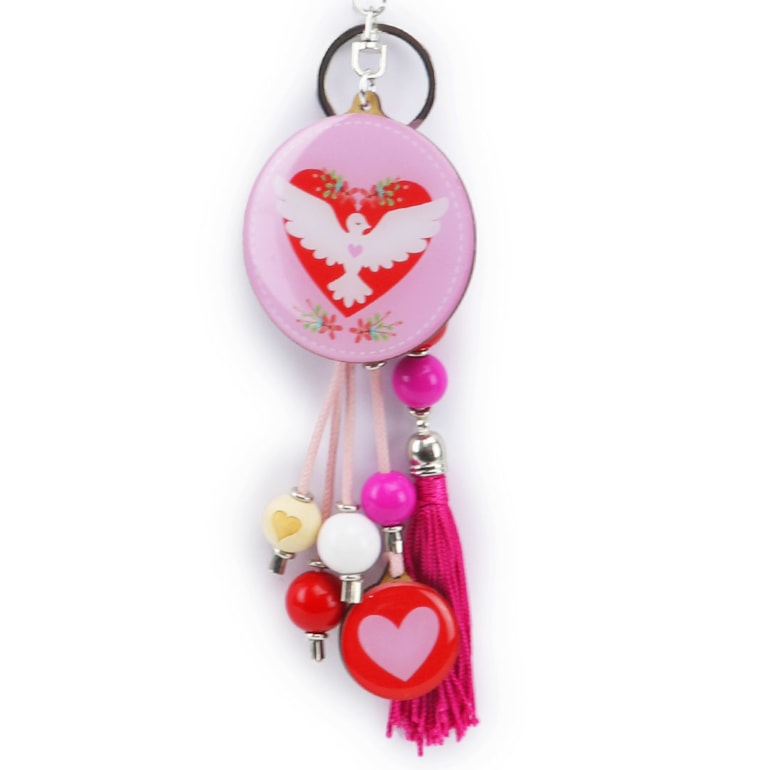 Você pode pendurar o Chaveiro Divino Espírito Santo Rosa, e um ganchinho prático permite pendurá-lo no porta chaves ou onde mais precisar, encontrando suas chaves mais rapidamente. Ideal para presentear amigas e familiares. Outros chaveiros dessa linha são também encantadores. Perfeito para levar com você e proporcionar muita fé e proteção.