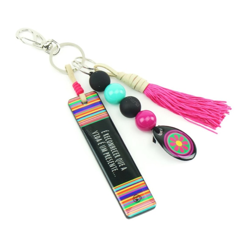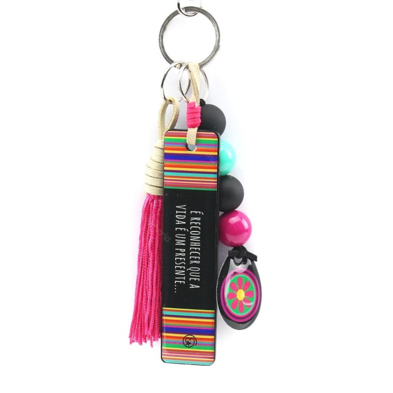 Produzido em resina acrílica, este chaveiro tem linda tag retangular estampada, de um lado, com a palavra “Gratidão” e, do outro, a frase: “É reconhecer que a vida é um presente…”. Um verdadeiro mimo!