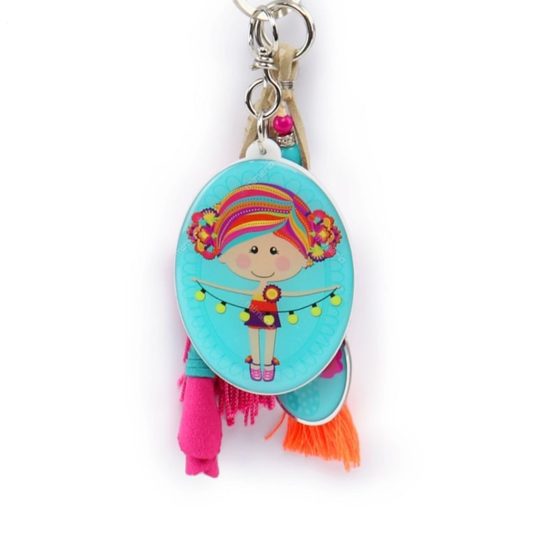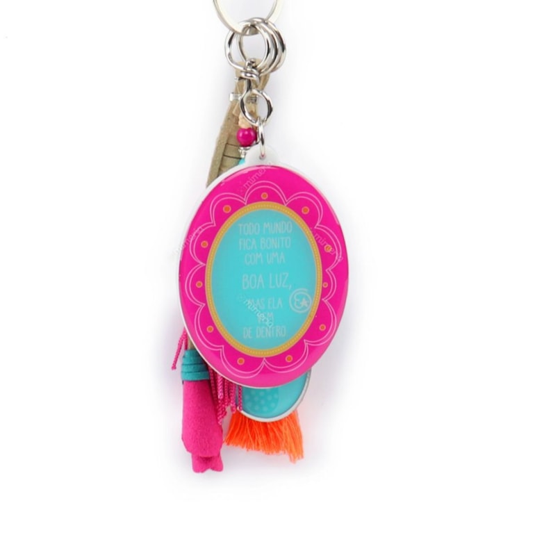 O Chaveiro Garota Luz é uma gracinha! Esse chaveirinho é muito caprichado e rico em detalhes. A tag oval tem fundo azul e tem estampada uma garotinha linda segurando um fio cheio de luzinhas. No verso traz uma mensagem inspiradora: “Todo mundo fica bonito com uma boa luz, mas ela vem de dentro”.