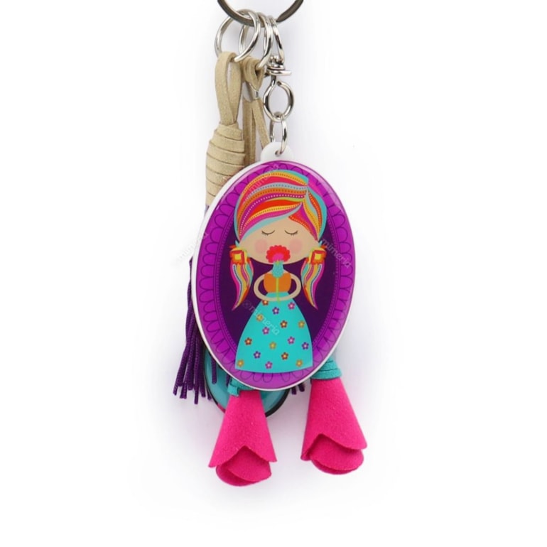 Fabricado em material plástico com resina acrílica, esse chaveiro traz tem vários penduricalhos com detalhes que combinam com a estampa. Um mimo. O Chaveiro Garota Seja acompanha um ganchinho para pendurar onde quiser e um argola em metal para colocar suas chaves. Um presente lindo, original, meigo e inspirador para dar para aquelas pessoas queridas!