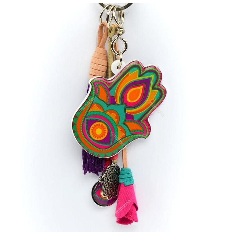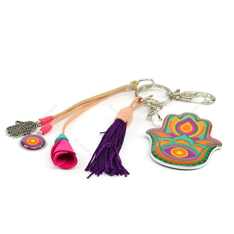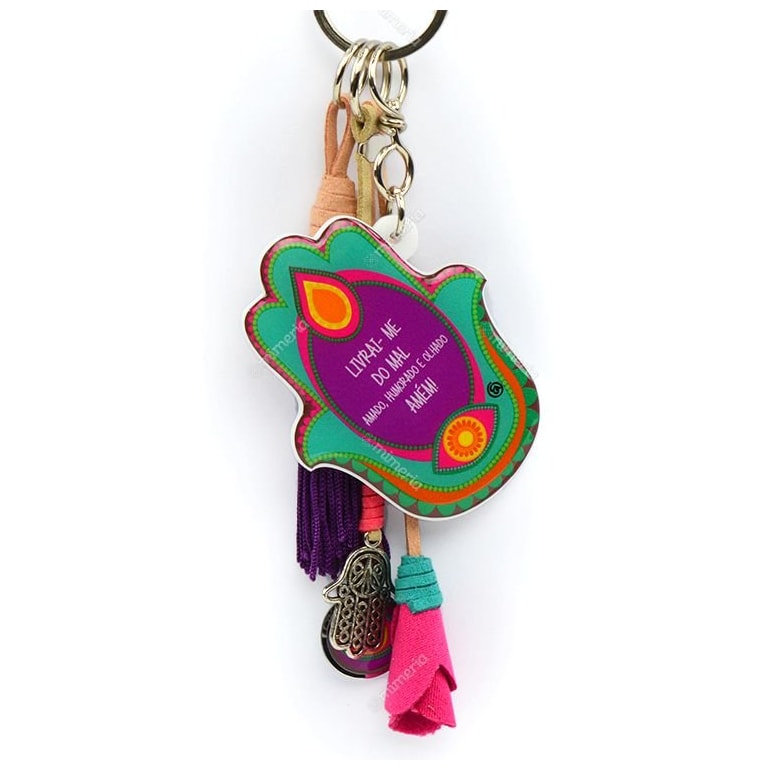 Com o Chaveiro Hamsa Colorido você tem uma argolinha de metal que ajuda você a colocar suas chaves. Vem também com um ganchinho super prático que permite pendurá-lo no porta chaves ou onde mais precisar. Imagine que lindo pendurado na bolsa, mochila ou mala ou onde mais quiser? Um mimo perfeito para dar de presente para irmãs, primas, amigas, colegas que gostam de boas energias. Amém! Essa linha de chaveirinhos é encantadora.