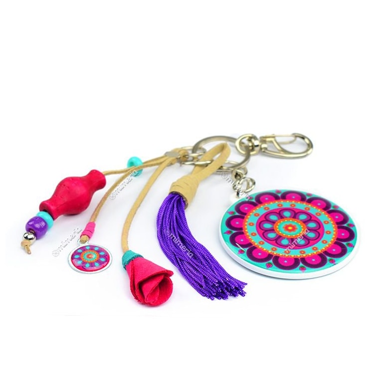 Fabricado em material plástico com resina acrílica, o Chaveiro Mandala Flor Roxa traz penduricalhos fofíssimos que remetem a estampa, como uma mini mandalinha. Simplesmente demais! No verso traz a frase: "Não perca as pequenas Alegrias esperando pela grande Felicidade".