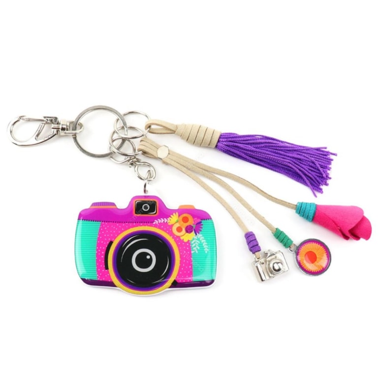 O Chaveiro Photo acompanha uma argola de metal para colocar suas chaves e um ganchinho prático para pendurar no porta chaves ou se para simplesmente enfeitar uma mala ou bolsa. Perfeito para quem ama fotografar!