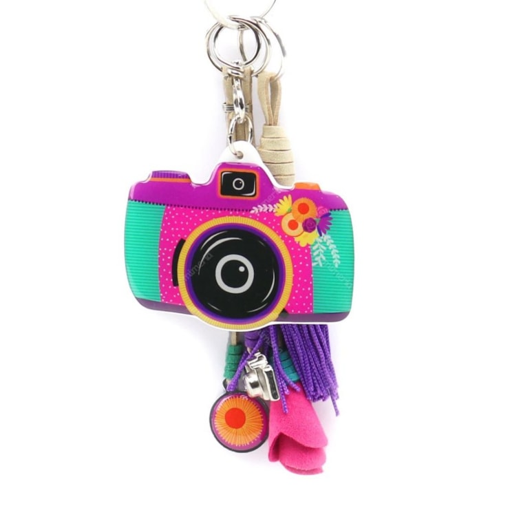 Para os amantes de registar momentos inesquesíveis o Chaveiro Photo é diferente e original. Além de organizar suas chaves vai ficar um charme pendurado na fechadura do seu cômodo, bolsa ou mochila. Esse chaveirino tem o formato da tag de uma máquina fotográfica nas cores rosa, roxo, verde, amarelo e preto.