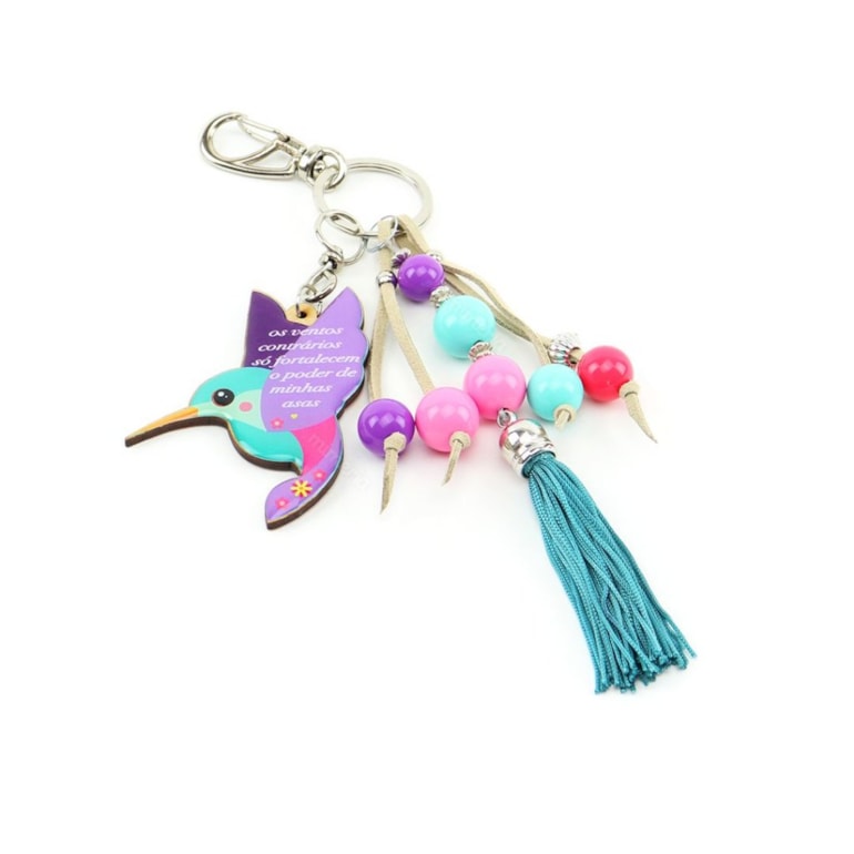 Lindo, este chaveiro conta com acabamento impecável e design super fofo no formato de um beija-flor colorido estampado com a frase: “Os ventos contrários só fortalecem o poder de minhas asas”. Um mimo super alto astral!