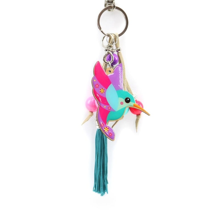 O Chaveiro Resinado Beija-Flor vem com penduricalhos coloridos de miçangas e franjinha, além de contar com gancho e argolas de metal super resistentes. Perfeito para enfeitar molho de chaves e afins!