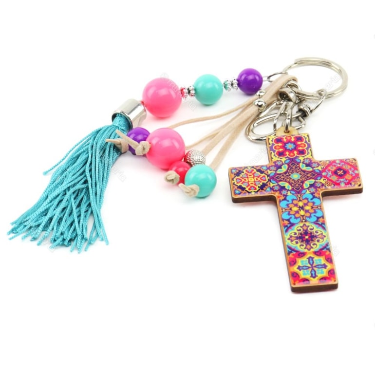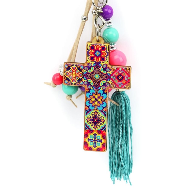 Você pode colocar suas chaves na argolinha que acompanha o Chaveiro Resinado Cruz ou pendurar na bolsa ou mochila. Ideal para presentear você. Toda essa linha de chaveiros tem uma variedade infinita de temas!