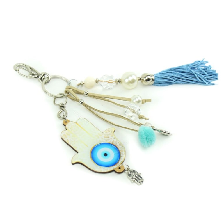 - Chaveiro Resinado Hamsa e Olho Grego;