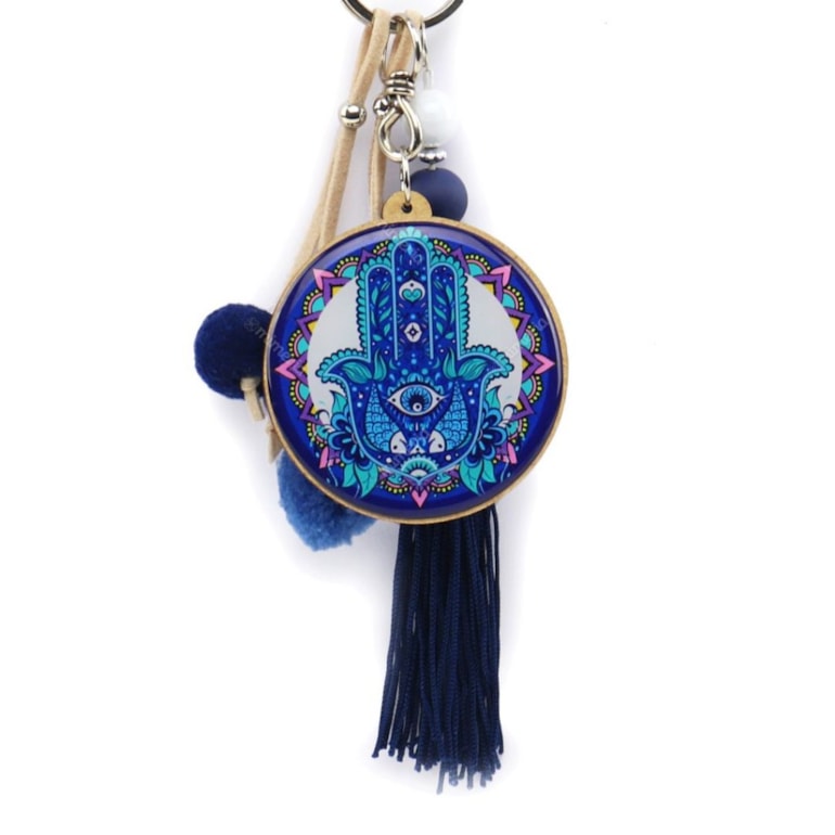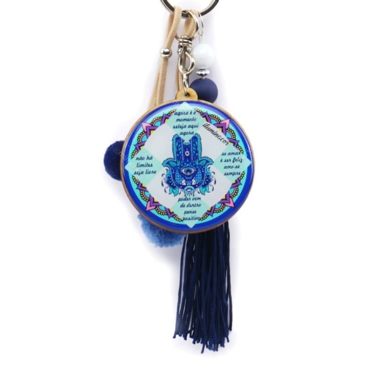 O Chaveiro Resinado Hamsa Mão de Fátima Poder Azul é perfeito para você mimar pessoas queridas que são apaixonadas por acessórios super goodvibes.