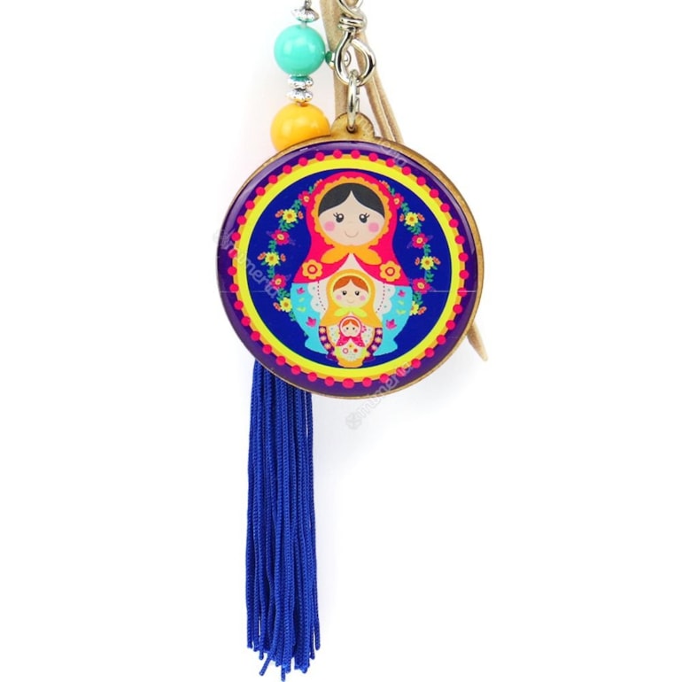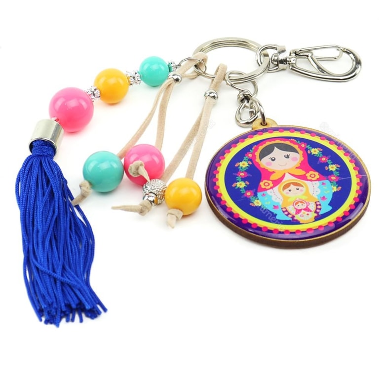 O Chaveiro Resinado Matrioska é fofíssimo! Você vai se apaixonar por esse chaveirinho que traz estampado três lindas matrioskas, bonecas russas, conhecidas mundialmente como símbolo do país. Tradicionalmente vem uma dentro da outra representando um família. Encantador, não?