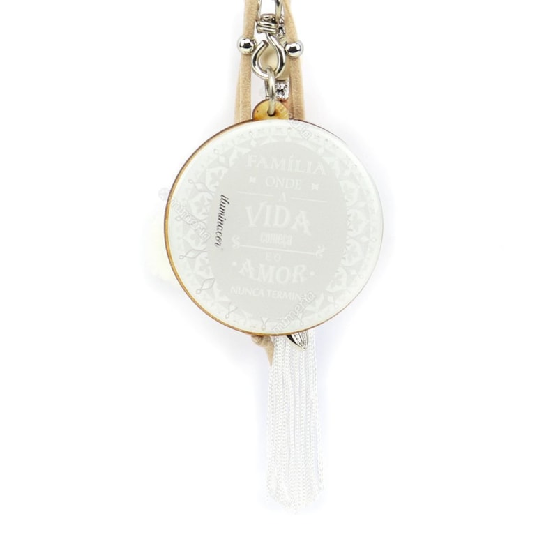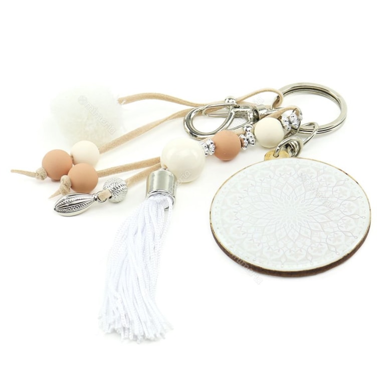 O Chaveiro Resinado Nude é encantador! Você pode organizar suas chaves e ainda enfeitar sua bolsa, mala ou mochila. Com o formato da tag redonda, esse chaveirinho traz a estampa de uma linda mandala off-white (tons de bege e branco). Lindíssima! Em geral, as mandalas tem como significado um círculo mágico, com concentração de energia, e são símbolos da integração e da harmonia.