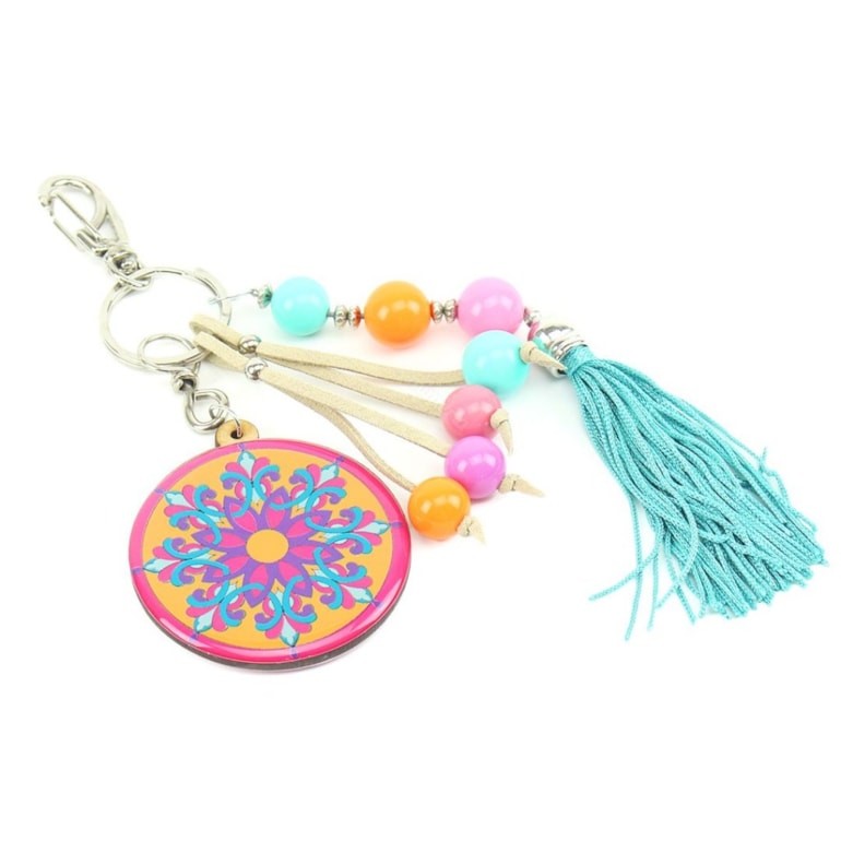 - Material: resina vitrificada e MDF, ganchinho e argola de metal.