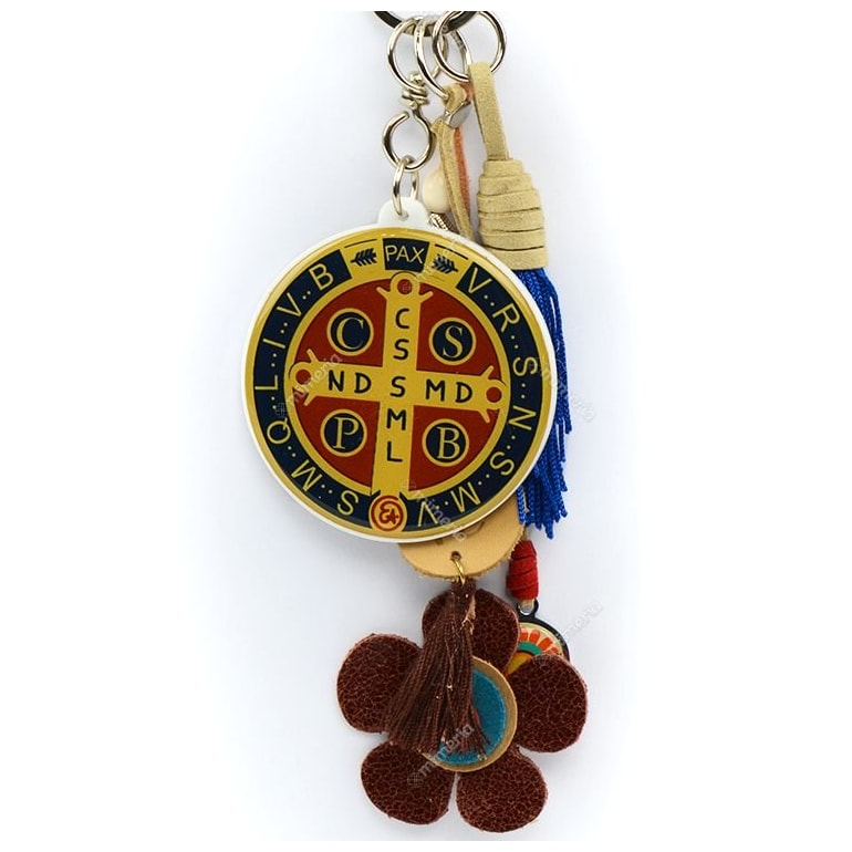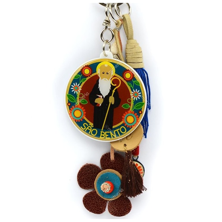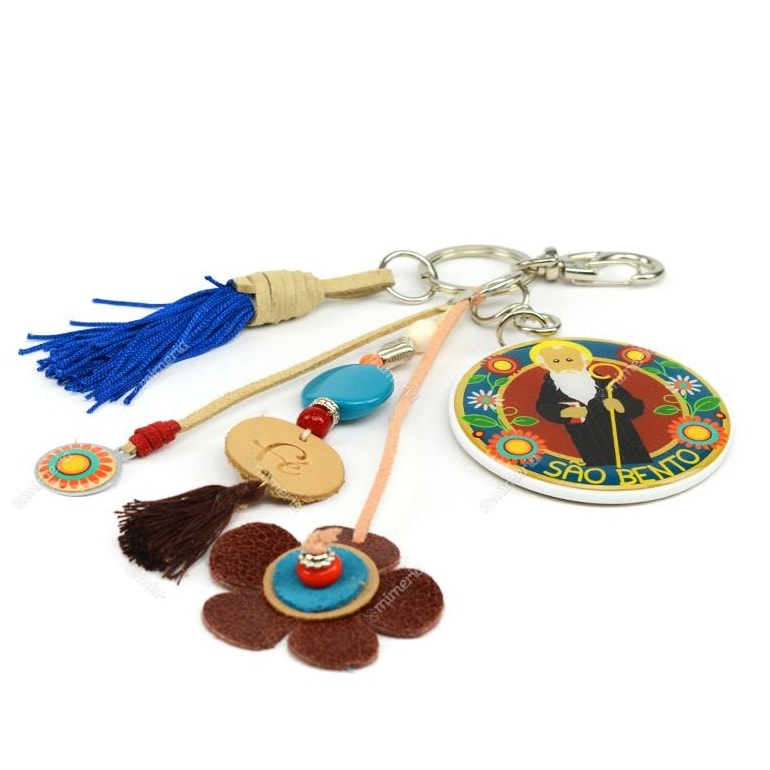 O Chaveiro São Bento é muito lindo. Esse Santo é bem popular e muito conhecido pela sua medalhinha. Acredita-se que o uso da melhada de São Bento concede a intuição de reconher os invejosos e afastar as pessoas sem caráter. No verso a oração: “A Cruz Sagrada, sagrada seja a minha luz. Não seja o dragão meu guia. Retira-te Satanás. Nunca me aconselhe coisas vãs. É mal que tu me ofereces. Bebe tu mesmo do teu veneno”.