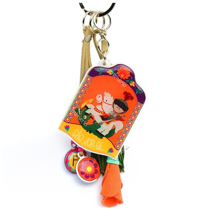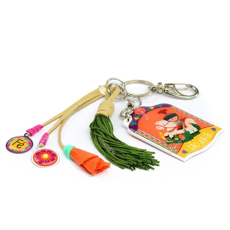 O Chaveiro São Jorge é uma graça! A tag tem estampada a representação de São Jorge, conhecido como o Santo Guerreiro que venceu o terrível dragão. É apaixonante, não?