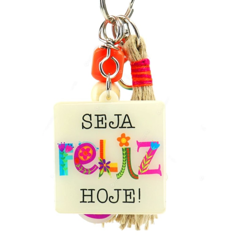 O Chaveiro Seja Feliz também tem argolinhas e ganchinhos de metais, perfeitos para alocar chaves e enfeitar sua mala, bolsa, mochila, bolsa sacola e afins. Esse artigo maravilhoso é também um presente perfeito para aquela pessoa querida.
