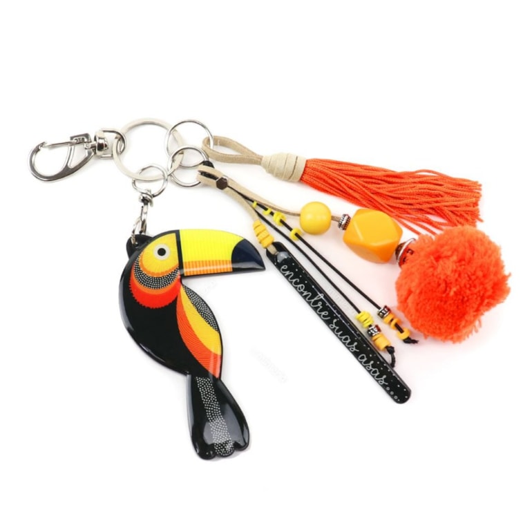 Descolado e funcional, esse Chaveiro Tucano Colorido ainda conta com uma tag escrita: "Encontre suas asas". Inspirador, não? Perfeito para você organizar suas chaves, além de decorar e enfeitar acessórios como bolsa, mala ou mochila.