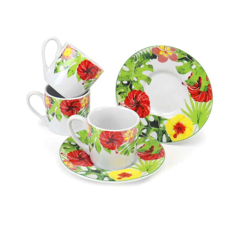O Conjunto 6 Xícaras de Porcelana com Pires Amazon é produzido em porcelana de ótima qualidade, composto por 6 xícaras com pires, todos estampados. Um jogo completo para sua casa!