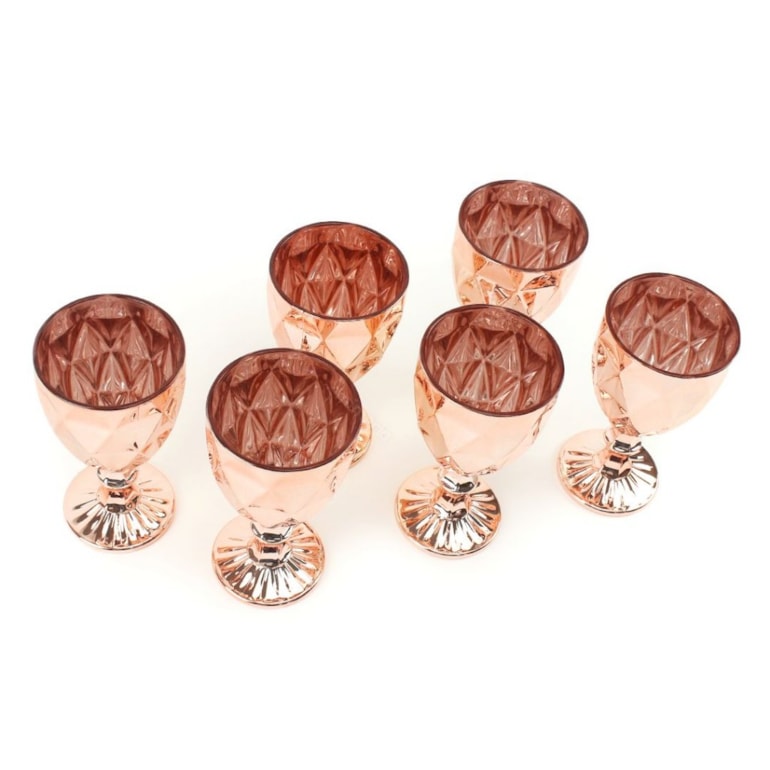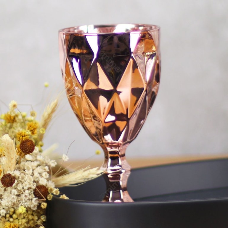 - Conjunto de 6 Taças para Água de Vidro Diamond Rose Gold;