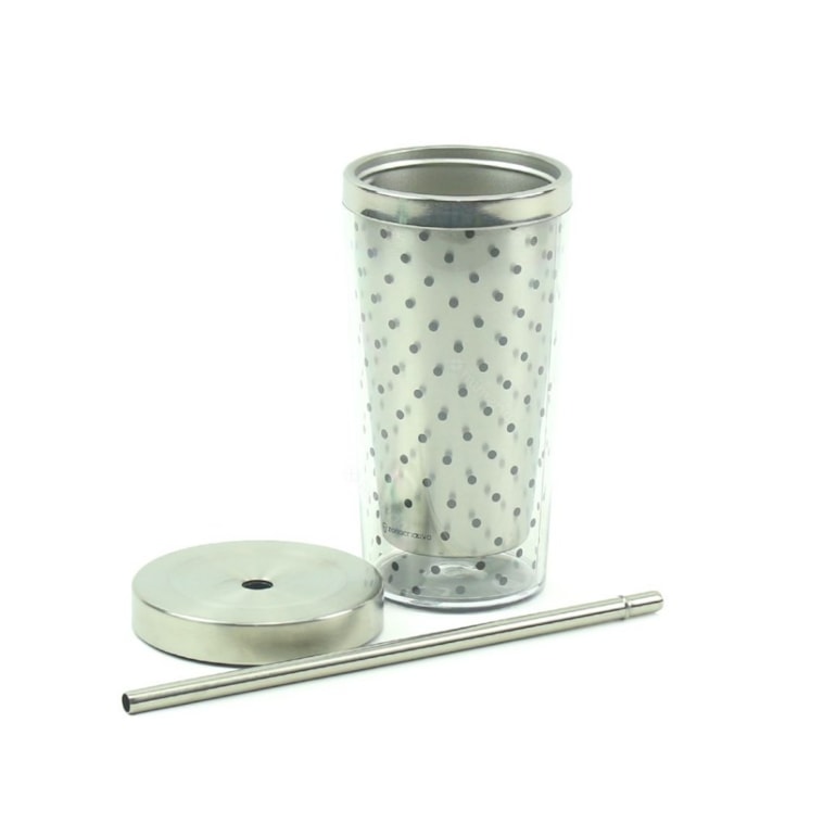 - Conteúdo: 1 copo; 1 tampa; 1 canudo; 1 escova de canudo.
