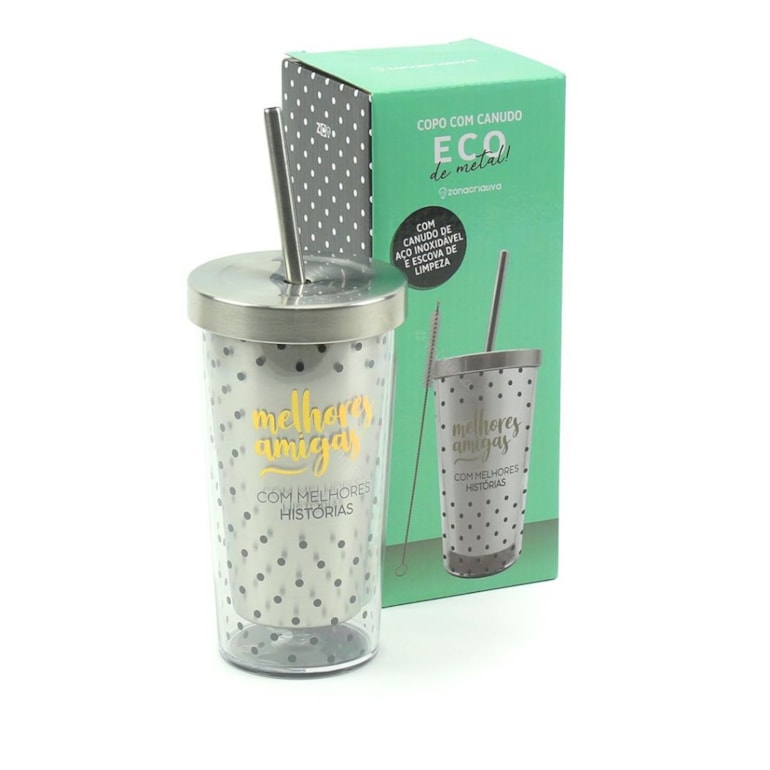 - Copo com Canudo Eco de Metal Melhores Amigas 450 ml;