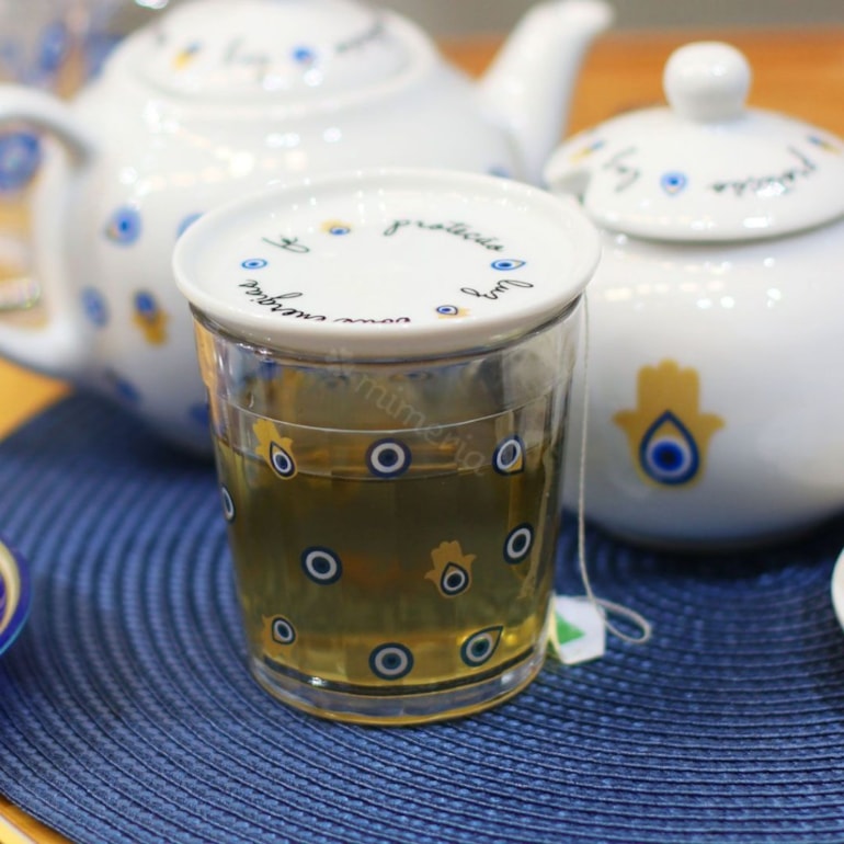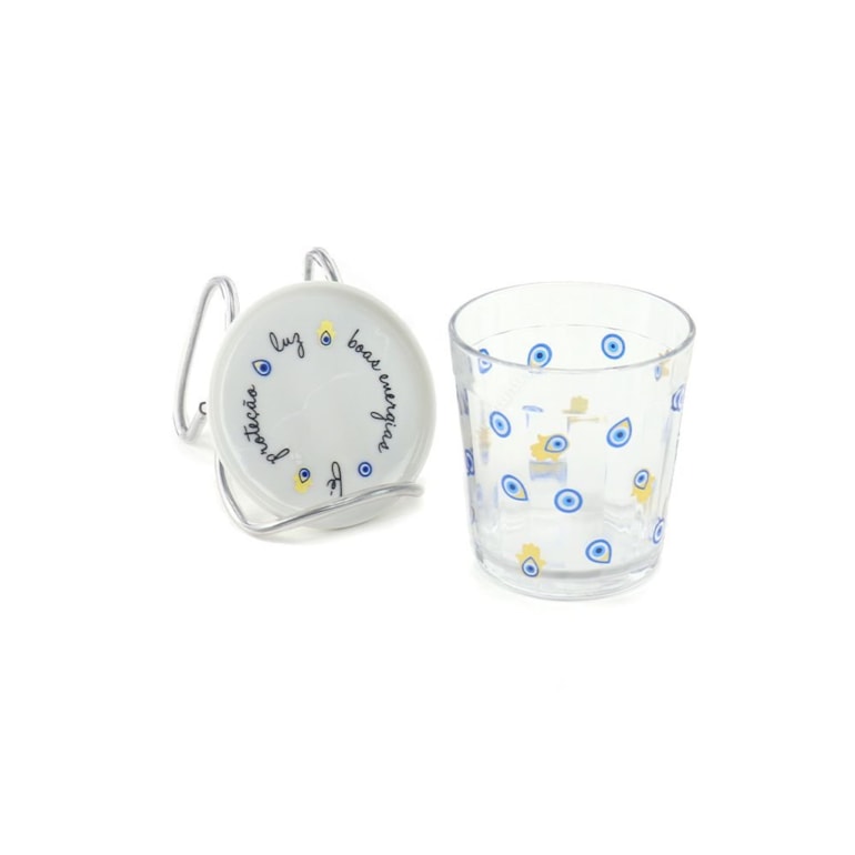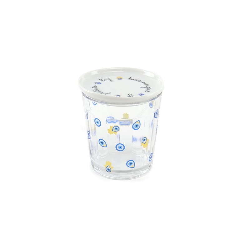 - Copo de Vidro com Tampa de Porcelana Olho Grego Boas Energias;