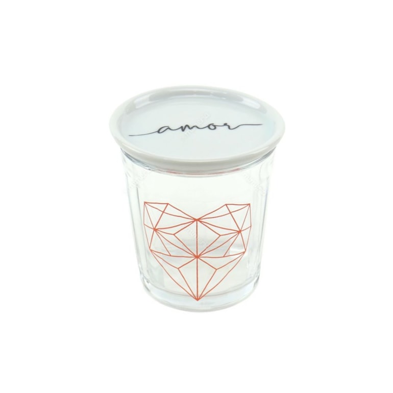 O copo de vidro tem uma linda estampa em rose gold inspirada no Origami, arte milenar em dobradura com papel, e uma palavra inspiradora no patrinho: "amor". Um mimo para decorar sua sala de estar, quarto, ou qualquer outro cantinho da sua casa ou trabalho com muito charme. O copo acompanha o pratinho com tampa de porcelana, o que evita que proteger sua bebida enquanto não a bebe. Um mimo! Além de decorar o ambiente é perfeito para colocar líquidos fresquinhos e deixar no criado mudo, aparador da sala ou mesa do escritório.