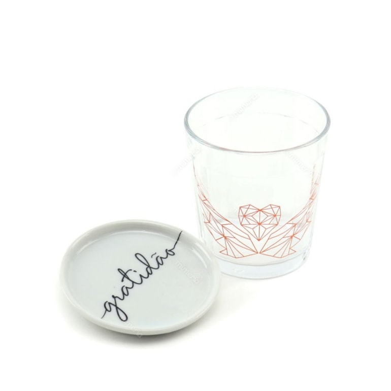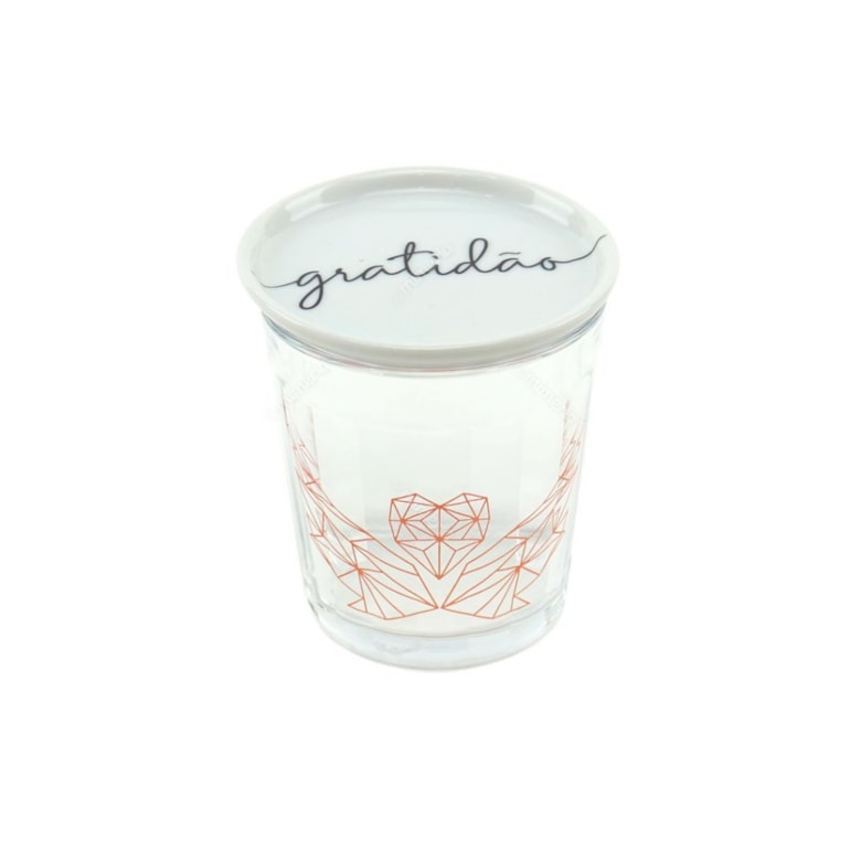 O copo de vidro tem uma linda estampa em rose gold inspirada no Origami, arte milenar em dobradura com papel, e uma palavra inspiradora no patrinho: "gratidão". Um mimo lindo para decorar sua sala de estar, quarto, banheiro ou lavabo e qualquer outro cantinho da sua casa ou trabalho com muito charme. O copo acompanha o pratinho com tampa de porcelana, o que evita que derrame sua bebida. O pratinho do Copo de Vidro Gratidão com Tampa serve também para proteger sua bebida enquanto não a bebe. Além de decorar o ambiente é perfeito para colocar líquidos fresquinhos e deixar no criado mudo, aparador da sala ou mesa do escritório.
