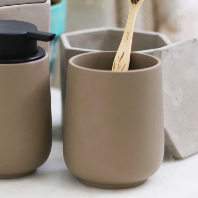 O Copo em Cimento Cinza é tudo o que te faltava para uma decoração de sucesso! Elegantíssimo, ele vai levar um toque harmônico e ultra refinado para o seu banheiro!