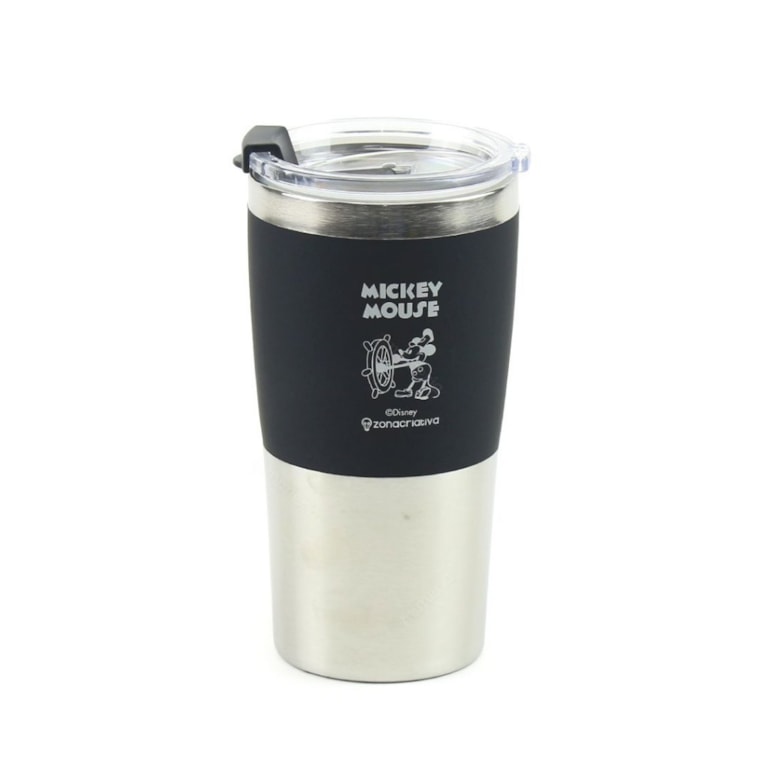Com o Copo Viagem Max Mickey Pose 450 ml suas bebidas vão ficar muito mais seguras e protegidas com o sabor e qualidade original, ele vem todo trabalhado em preto, branco e prata, vai deixar os seus momentos muito mais especiais!