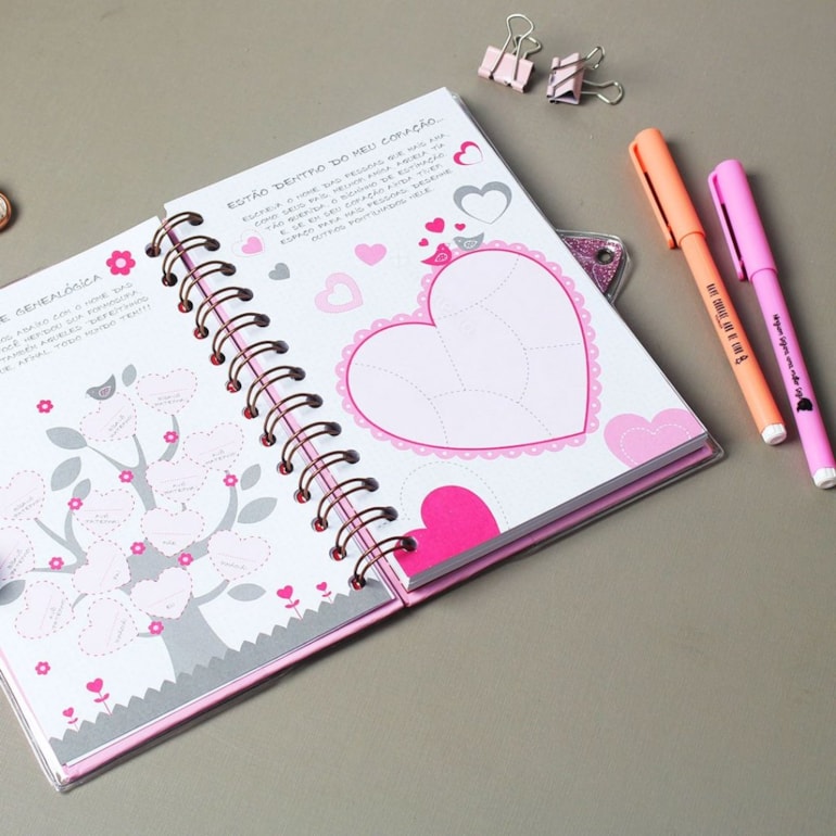 O Diário com Chaves Borboletas tem capa dura, miolo pautado e páginas especiais para você anotar sua árvore genealógica, suas preferências e muito mais. Simplesmente perfeito!