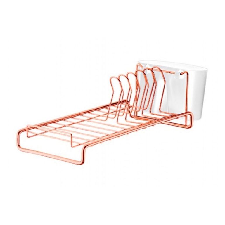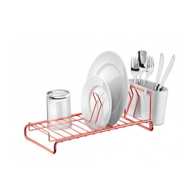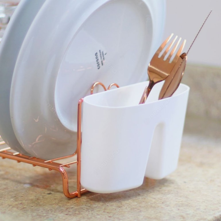 - Escorredor de Louças Compacto Originale com Porta Talher Branco em Aço Rose Gold;