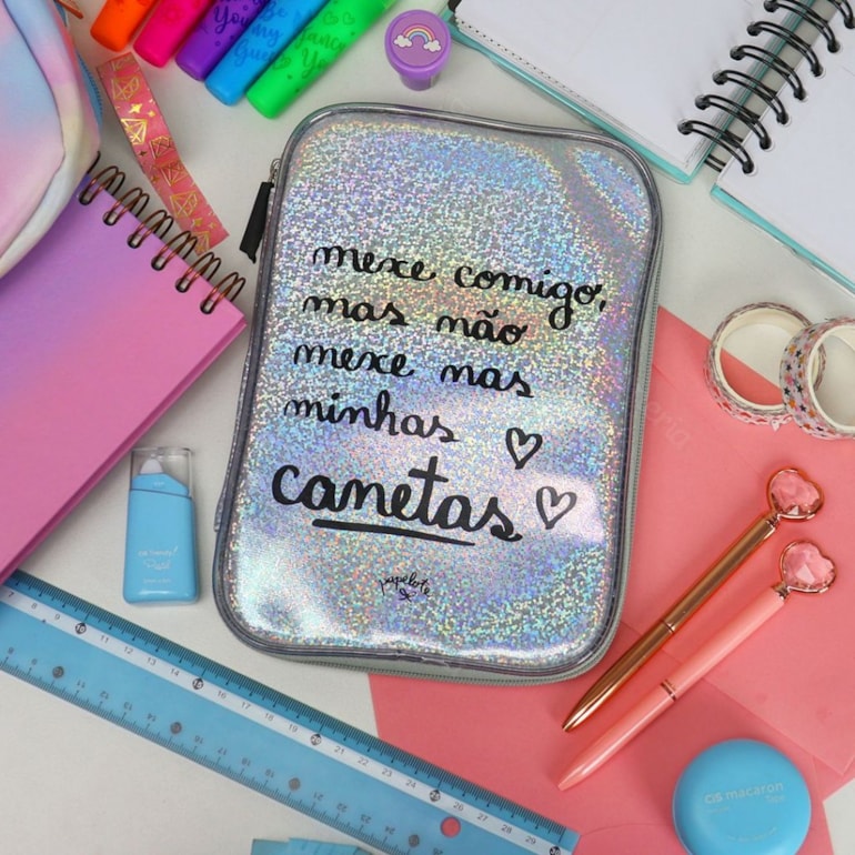 O Estojo Case Holográfico Mexe Comigo Mas não Mexe nas MInhas Canetas é maravilhoso. Perfeito para você que adora papelaria e é super ciumenta!!!