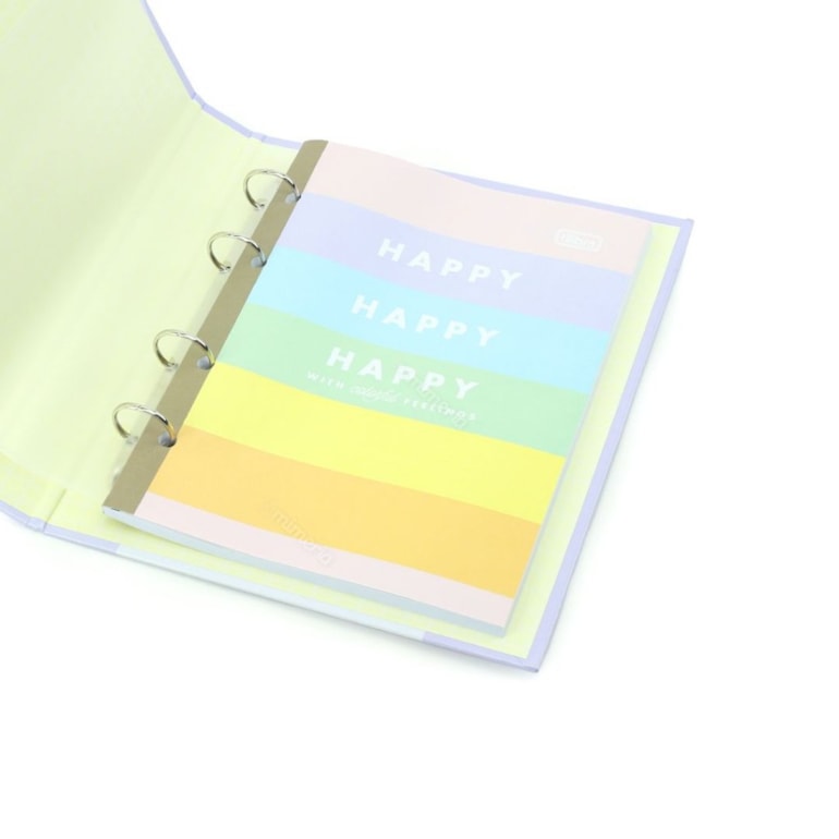 O Fichário Argolado com Elástico Happy Lilás tem acabamento cartonado, vem com folhas pautadas, páginas de adesivos e envelope plástico. Além disso, tem linda capa com detalhes holográficos em fundo lilás. Um verdadeiro mimo!