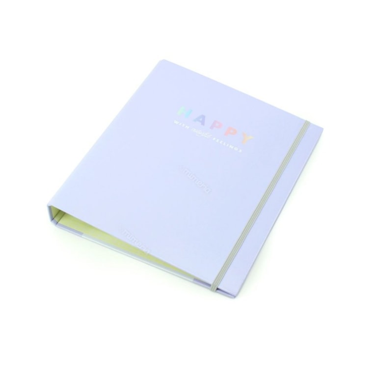 O Fichário Argolado com Elástico Happy Lilás é lindo e usual. Perfeito para quem gosta de acessórios versáteis e que duram muito tempo.
