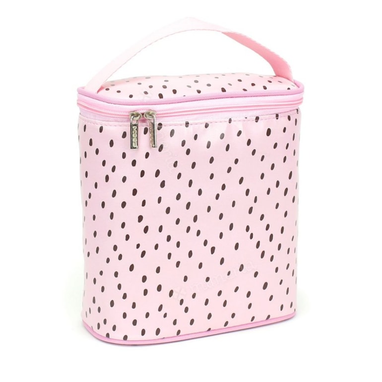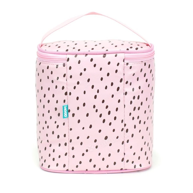 A Frasqueira Térmica Oncinha vem estampada com pintinhas pretas sobre um fundo rosinha! Seus acabamentos são impecáveis e também trabalhados em um fofo tom de rosa, ela conta com fechamento em zíper e é tudo o que você precisa!
