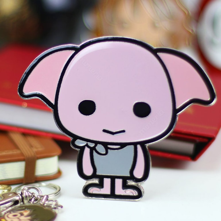 O Funpin Decorativo Broche Decorativo Dobby Grande é um produto oficial Warner Bros! Ele é feito de metal e é bastante resistente, vem em uma versão kawaii super fofa e encantadora de Dobby, o elfo que foi liberto pelo próprio Harry Potter! Suas cores e detalhes são fiéis as do filme, e ele ainda conta com duas travas de silicone que aumentam sua segurança e fixação.