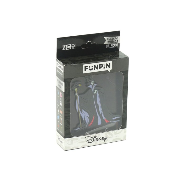 Produzido em metal, ele vem no formato da Malévola com detalhes impecáveis e cheio de personalidade! Ele possui duas travas de metal traseiras que facilitam sua fixação em bolsas, peças de roupa e afins, impedindo que o mesmo seja perdido com facilidade, além de também vir com um suporte transparente para deixar o seu funpin paradinho, seguro e exposto na sua estante!