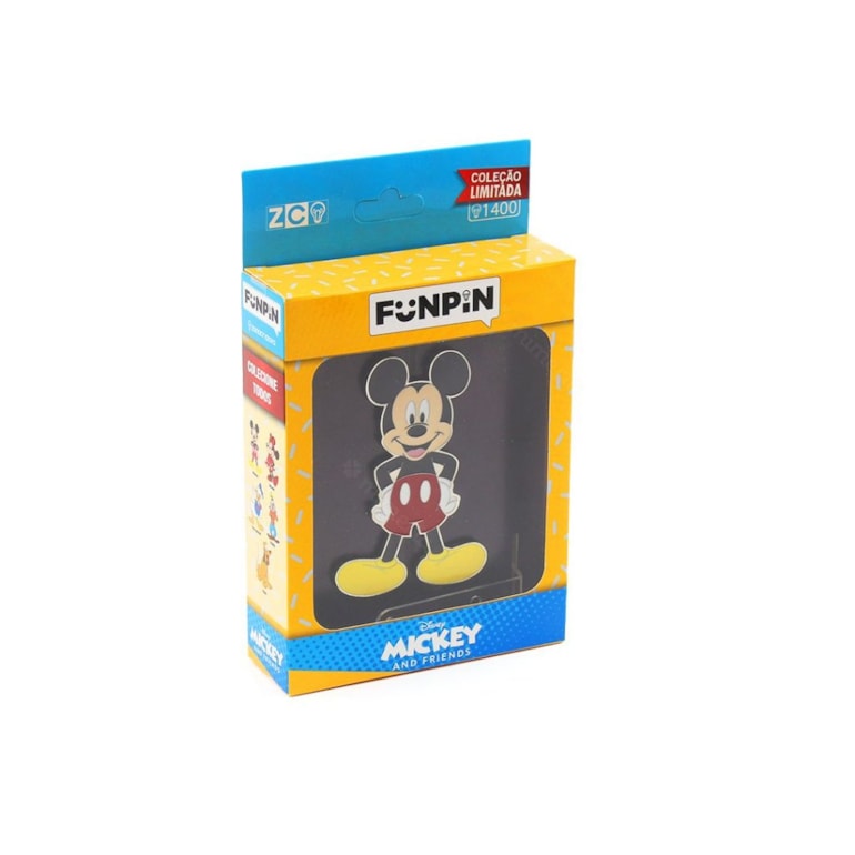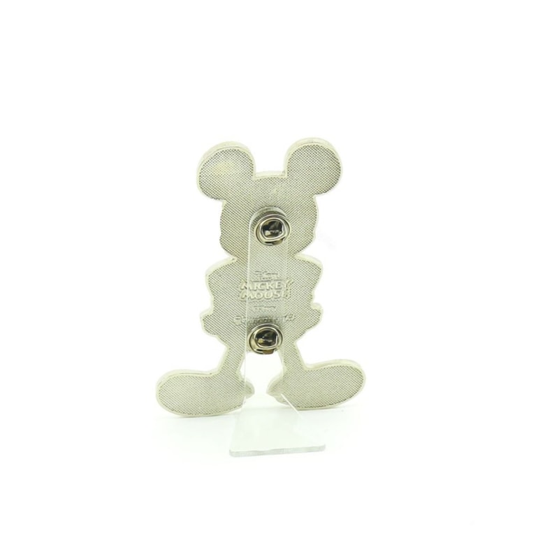 Produzido em metal, ele vem no formato do Mickey com sua habitual expressão alegre e tem destaque especial para suas cores e detalhes! Possui duas travas de metal traseiras que facilitam sua fixação em bolsas, peças de roupa e afins, impedindo que o mesmo seja perdido com facilidade, além de também vir com um suporte transparente para deixar o seu funpin paradinho, seguro e exposto na sua estante!