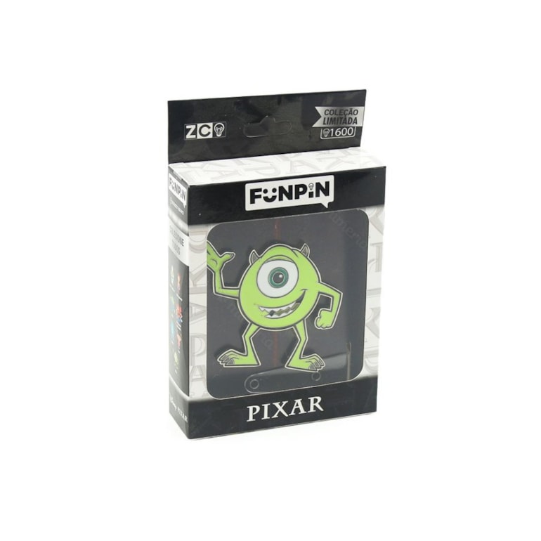 O Funpin Decorativo Monstros Mike Wazowski Grande é produzido em metal, e possui duas tarraxinhas de metal para ser fixado com maior segurança e praticidade. Ele também conta com um suporte transparente hiper prático que permite com que você o deixe exposto na sua estante ou em qualquer outro lugar de superfície plana!