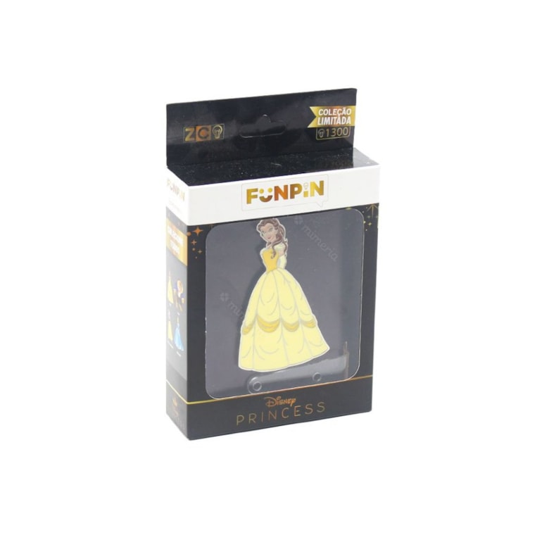 Produzido em metal, ele vem no formato da princesa Bela com seu traje especial! Possui duas travas de metal traseiras que facilitam sua fixação em bolsas, peças de roupa e afins, impedindo que o mesmo seja perdido com facilidade, além de também vir com um suporte transparente para deixar o seu funpin paradinho, seguro e exposto na sua estante!