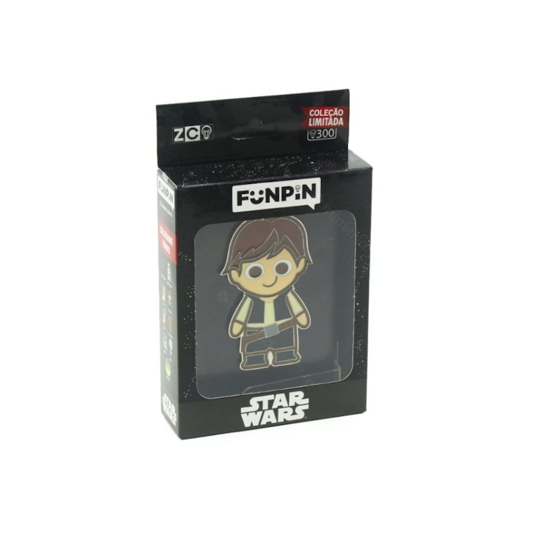 Trabalhado em metal, ele vem no formato de Han Solo em uma versão fofa e produzida com riqueza de detalhes! Ele possui duas travas de metal traseiras que facilitam sua fixação em bolsas, peças de roupa e afins, impedindo que o mesmo seja perdido com facilidade, além de também vir com um suporte transparente para deixar o seu funpin paradinho, seguro e exposto na sua estante!